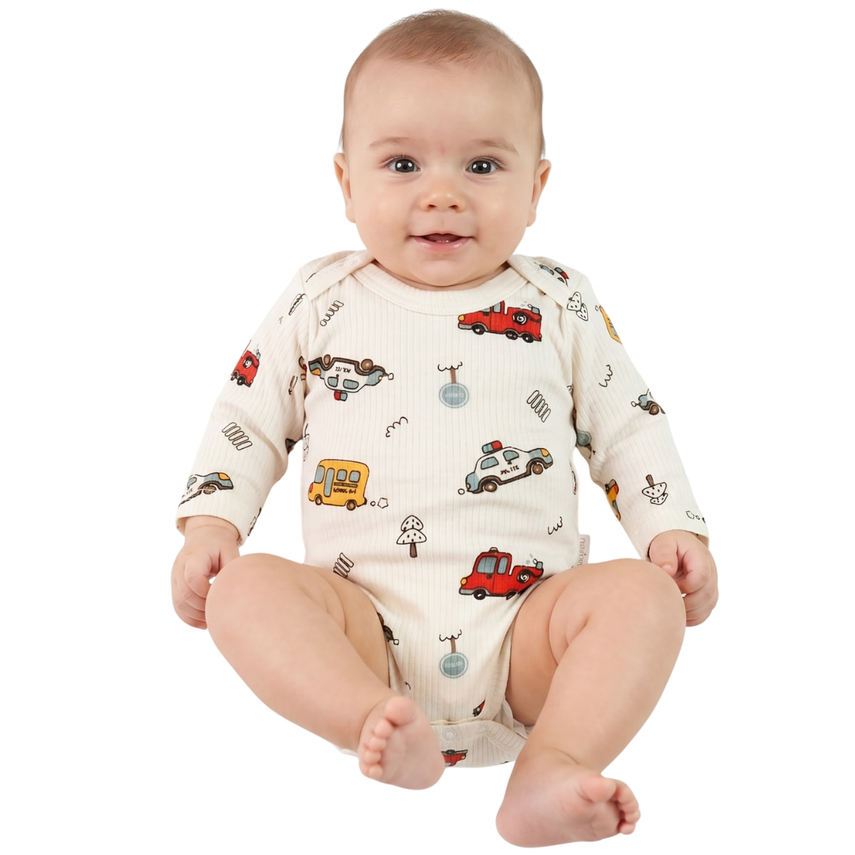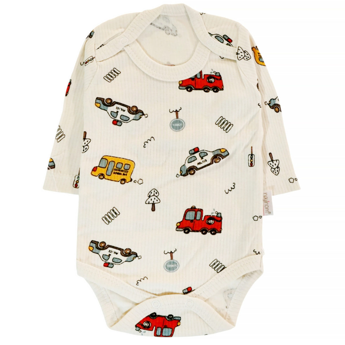 Δώστε χαρά στα αγοράκια σας με αυτό το μπεζ μακρυμάνικο βρεφικό κορμάκι από τη Nayinom. Το όμορφο σχέδιο με τα αυτοκινητάκια προσφέρει μια πολύ γλυκιά και παιχνιδιάρικη εικόνα για τις καθημερινές τους βόλτες. Είναι φτιαγμένο από 100% βαμβάκι, ώστε να αγκαλιάζει απαλά το ευαίσθητο δερματάκι τους και να τους χαρίζει όλη την άνεση που χρειάζονται για να παίζουν ελεύθερα. Για να είναι η μέρα σας πιο εύκολη, κλείνει με πρακτικά τρουκς στο κάτω μέρος, κάνοντας την αλλαγή της πάνας μια γρήγορη και απλή κίνηση, χωρίς να ταλαιπωρούνται τα μωράκια σας. Μπορείτε να το ταιριάξετε πανεύκολα με ένα άνετο παντελονάκι ή την αγαπημένη τους φόρμα, προσφέροντας στους μικρούς σας ένα όμορφο και στιλάτο ντύσιμο για κάθε ώρα της ημέρας.