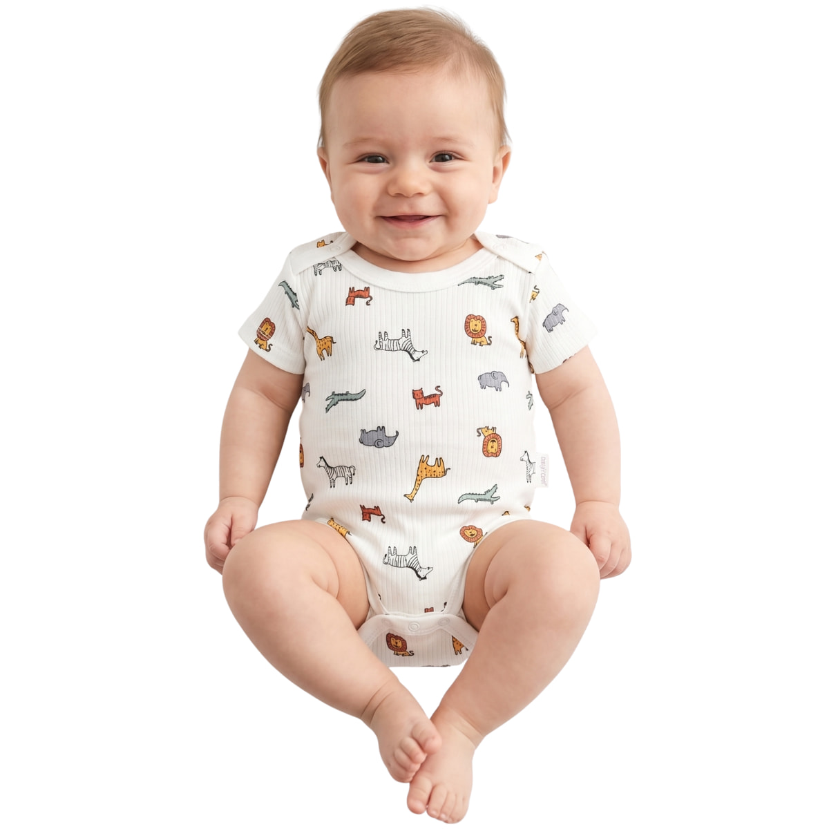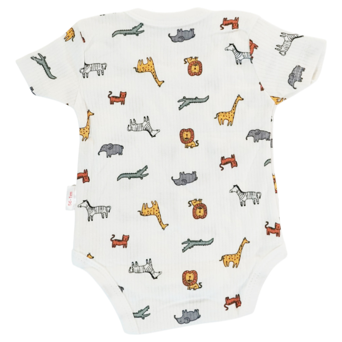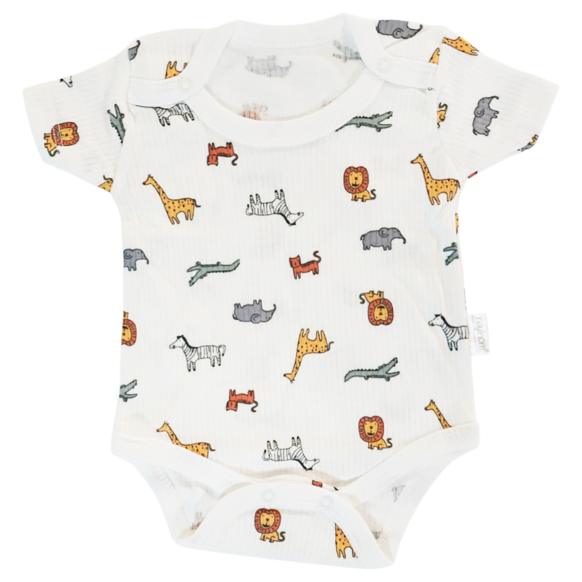 Ετοιμαστείτε για τις πιο όμορφες εμφανίσεις που θα κάνουν τα αγοράκια σας, επιλέγοντας αυτό το λευκό κοντομάνικο βρεφικό κορμάκι από τη Nayinom. Το γεμάτο φαντασία τύπωμα με τα ζωάκια της ζούγκλας, το οποίο καλύπτει ολόκληρο το ρούχο, δίνει μια πολύ χαρούμενη μορφή στο ντύσιμό τους. Η προσεκτική του κατασκευή από 100% βαμβάκι στέκεται με απόλυτο σεβασμό δίπλα στο ευαίσθητο δερματάκι τους, προσφέροντας μια εξαιρετικά φυσική και ανάλαφρη αίσθηση καθώς παίζουν. Για να διευκολύνει το δικό σας πρόγραμμα, διαθέτει πρακτικά τρουκς στο κάτω μέρος, τα οποία βοηθούν να αλλάζετε την πάνα άμεσα, χωρίς να προκαλείται καμία αναστάτωση στα μωράκια σας. Μπορείτε να το ταιριάξετε όμορφα με μια τζιν βερμούδα ή ένα άνετο παντελονάκι, χαρίζοντας στους μικρούς σας ένα πραγματικά στιλάτο και δροσερό αποτέλεσμα για κάθε περίσταση.