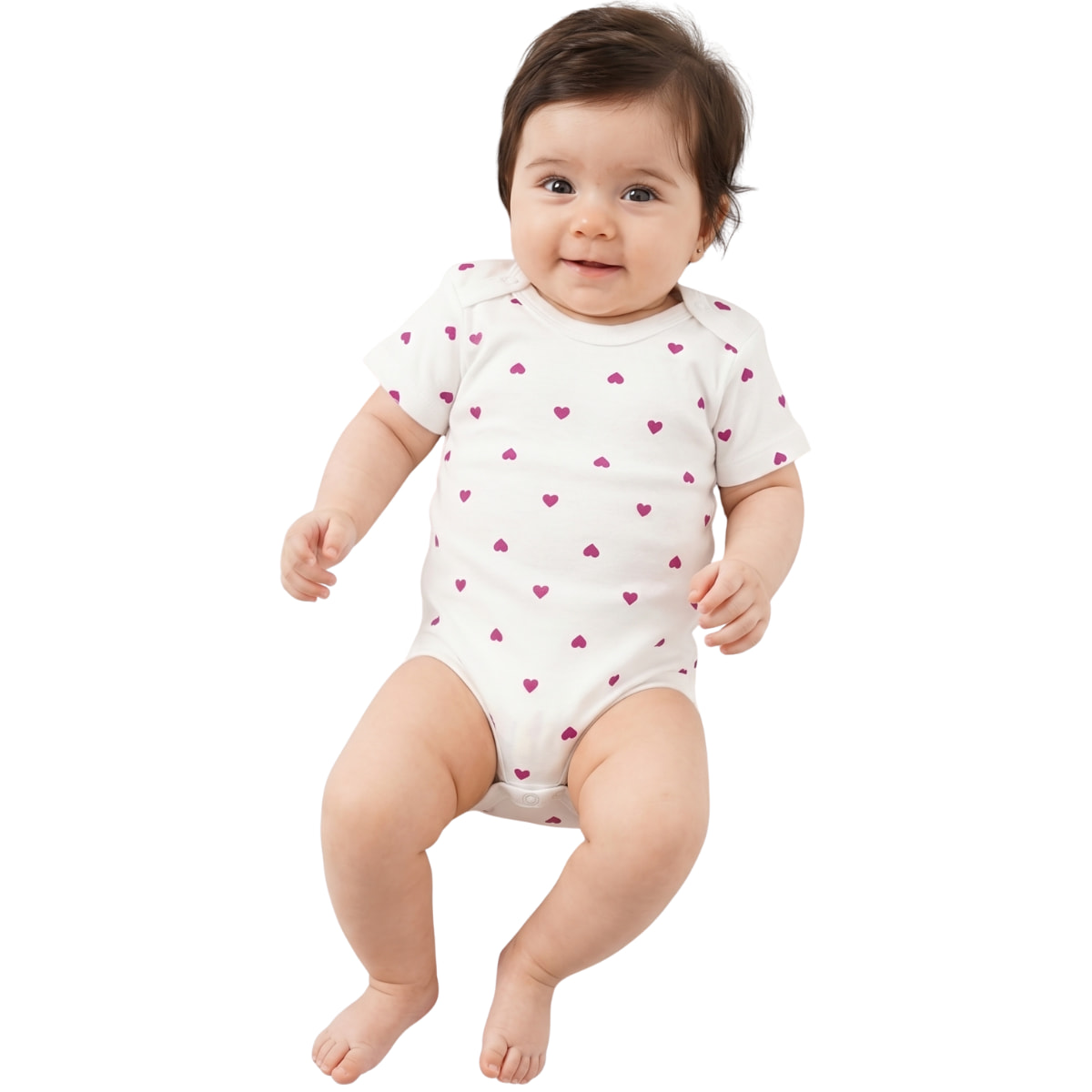 Χαρίστε στα κοριτσάκια σας τις πιο όμορφες καθημερινές εμφανίσεις με αυτό το λευκό κοντομάνικο βρεφικό κορμάκι από τη Nayinom. Το γεμάτο αγάπη τύπωμα με τις καρδούλες, που καλύπτει κάθε σημείο του ρούχου, προσφέρει μια μοναδικά γλυκιά εικόνα για τις βόλτες τους. Είναι φτιαγμένο με απόλυτη προσοχή από 100% βαμβάκι, ώστε να δημιουργεί μια τρυφερή αγκαλιά για το ευαίσθητο δερματάκι τους, εξασφαλίζοντας φυσική αίσθηση την ώρα που παίζουν. Γνωρίζοντας τις καθημερινές σας ανάγκες, το άνοιγμα με τα τρουκς στο κάτω μέρος βοηθάει να γίνεται η αλλαγή της πάνας μια άμεση και εύκολη διαδικασία, χωρίς καθόλου ταλαιπωρία για τα μωράκια σας. Μπορείτε να το ταιριάξετε όμορφα με μια ανάλαφρη φουστίτσα ή το αγαπημένο τους παντελόνι, δίνοντας στις μικρές σας ένα εξαιρετικά στιλάτο και άνετο αποτέλεσμα από το πρωί ως το βράδυ.