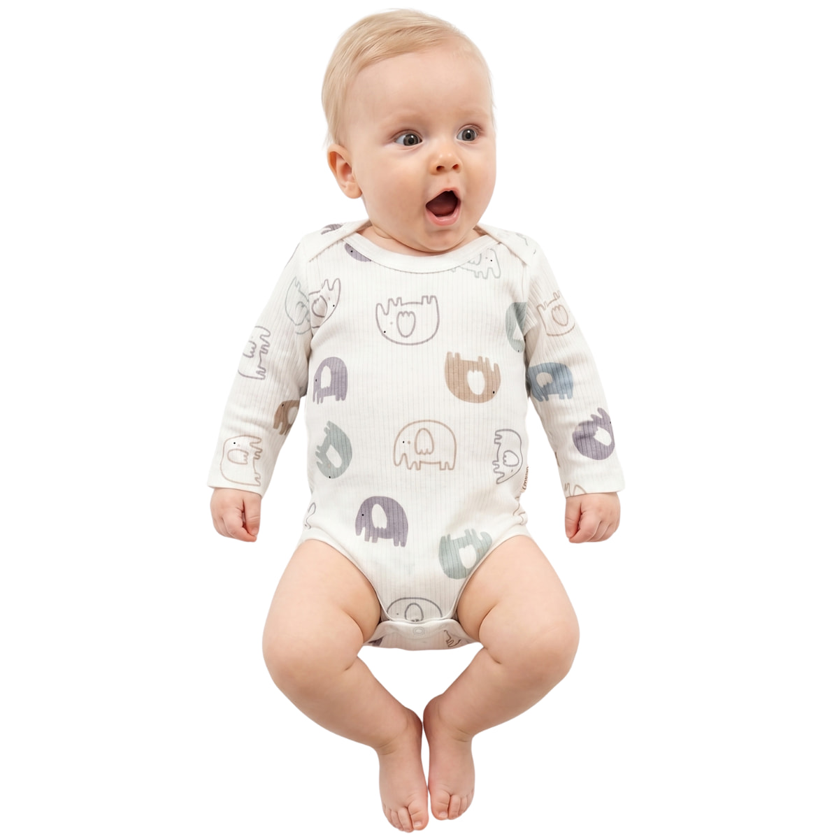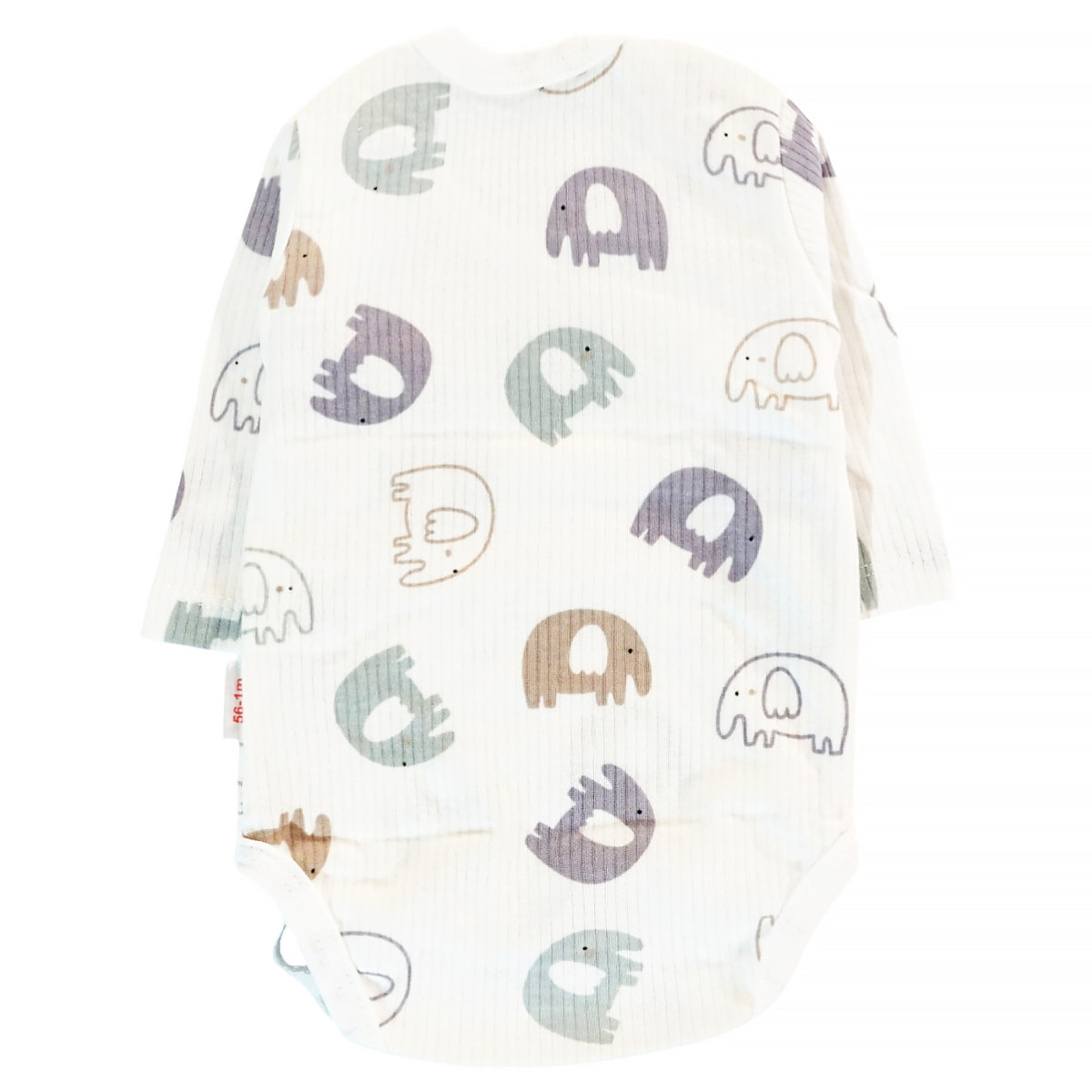 Ντύστε τα αγοράκια σας με πολλή αγάπη επιλέγοντας αυτό το εκρού μακρυμάνικο βρεφικό κορμάκι από τη Nayinom. Τα μικρά ελεφαντάκια που βρίσκονται σε όλο το ύφασμα προσφέρουν μια πολύ γλυκιά εικόνα για κάθε τους εμφάνιση. Καθώς είναι ραμμένο από 100% βαμβάκι, φροντίζει φυσικά το ευαίσθητο δερματάκι τους και τους αφήνει να παίζουν με απόλυτη άνεση όλη την ημέρα. Γνωρίζοντας πόσο σημαντικός είναι ο χρόνος σας, το άνοιγμα στο κάτω μέρος με τα τρουκς σας βοηθάει να αλλάζετε την πάνα εύκολα και γρήγορα, χωρίς να ταλαιπωρούνται τα μωράκια σας. Φορέστε το στους μικρούς σας μαζί με ένα τζιν παντελονάκι ή μια άνετη φόρμα, δημιουργώντας ένα υπέροχο και στιλάτο σύνολο για τις καθημερινές σας βόλτες.