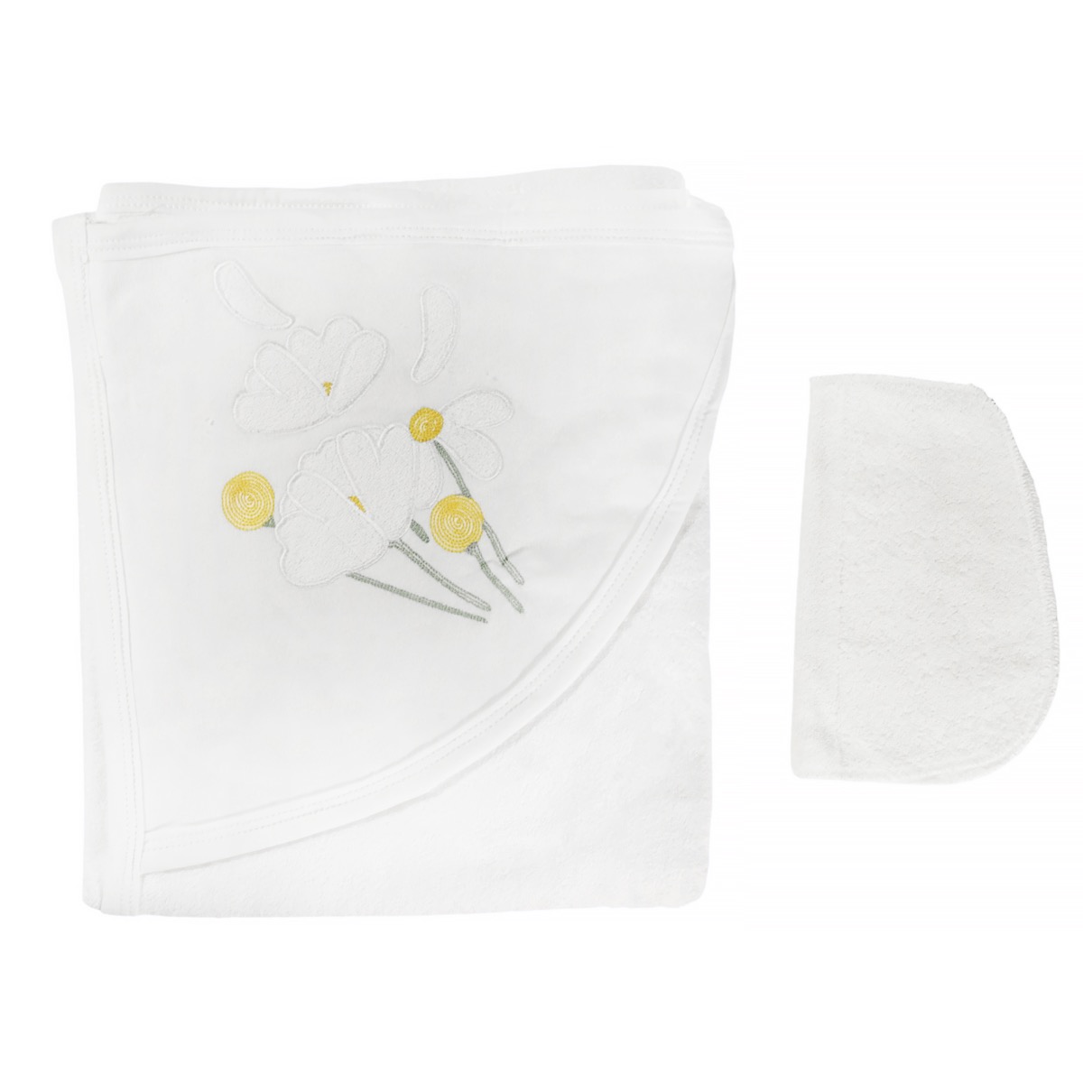 Η βρεφική μπουρνουζοπετσέτα με πανάκι μπάνιου Pamuk Baby είναι ιδανική για το πρώτο σετ περιποίησης του μωρού σας. Σε εκρού απόχρωση που ταιριάζει τόσο σε αγοράκια όσο και σε κοριτσάκια, διαθέτει κουκούλα με απλικέ σχέδιο μαργαρίτες, χαρίζοντας μια γλυκιά και παιχνιδιάρικη πινελιά στο μπάνιο. Είναι κατασκευασμένη από 80% βαμβάκι και 20% πολυεστέρα, προσφέροντας απαλότητα, αντοχή και γρήγορο στέγνωμα. Το πρακτικό πανάκι μπάνιου που τη συνοδεύει κάνει το σετ ολοκληρωμένο, ώστε να καλύπτει κάθε ανάγκη του καθημερινού μπάνιου του μωρού. Ένα ποιοτικό και χρήσιμο δώρο για νεογέννητα, που συνδυάζει άνεση, στιλ και λειτουργικότητα.