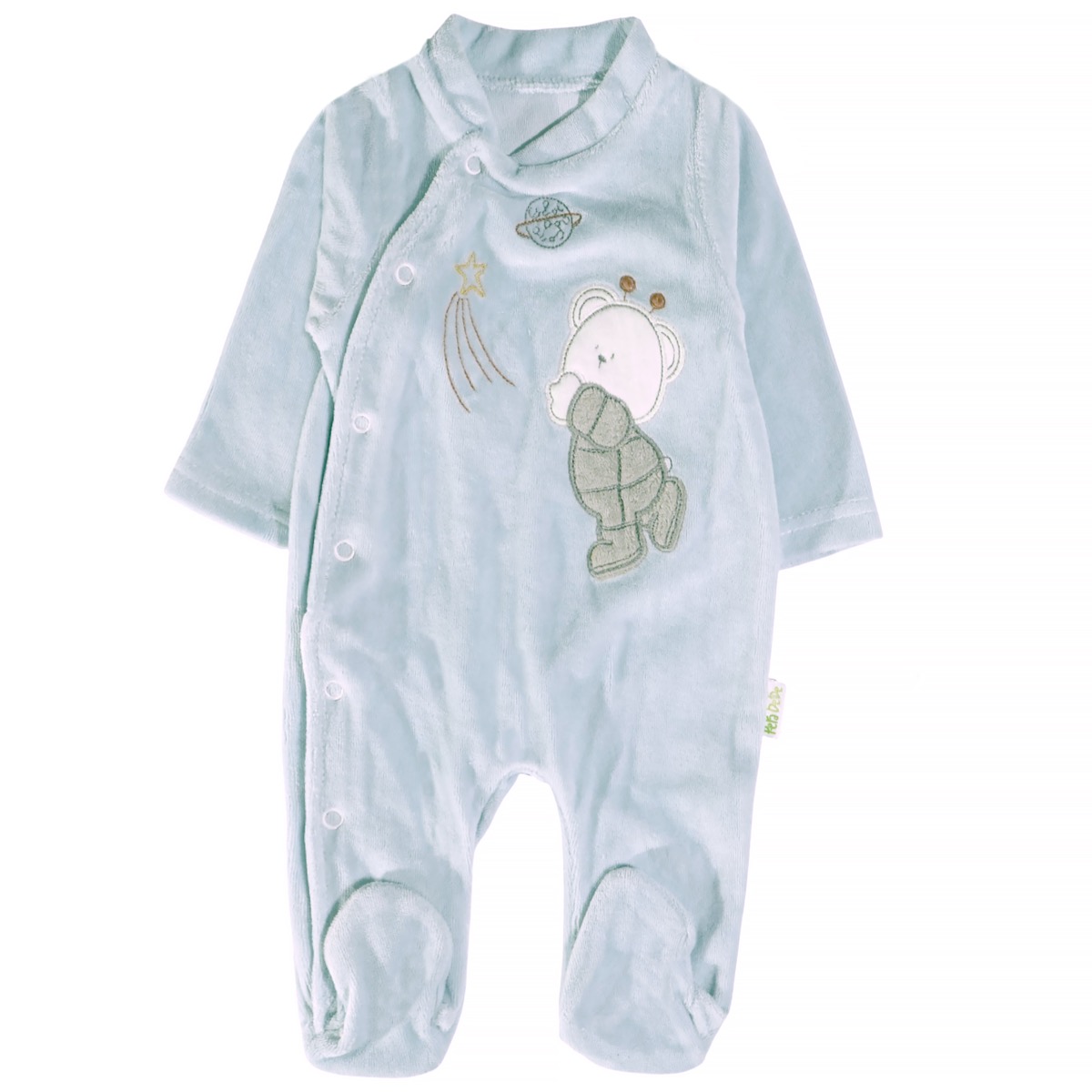 Pera Bebe ολόσωμο βελουτέ φορμάκι με σκουφάκι «Space Blue Teddy»