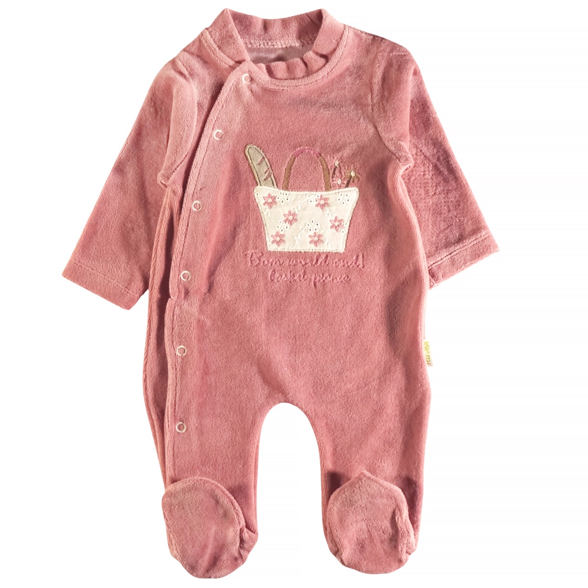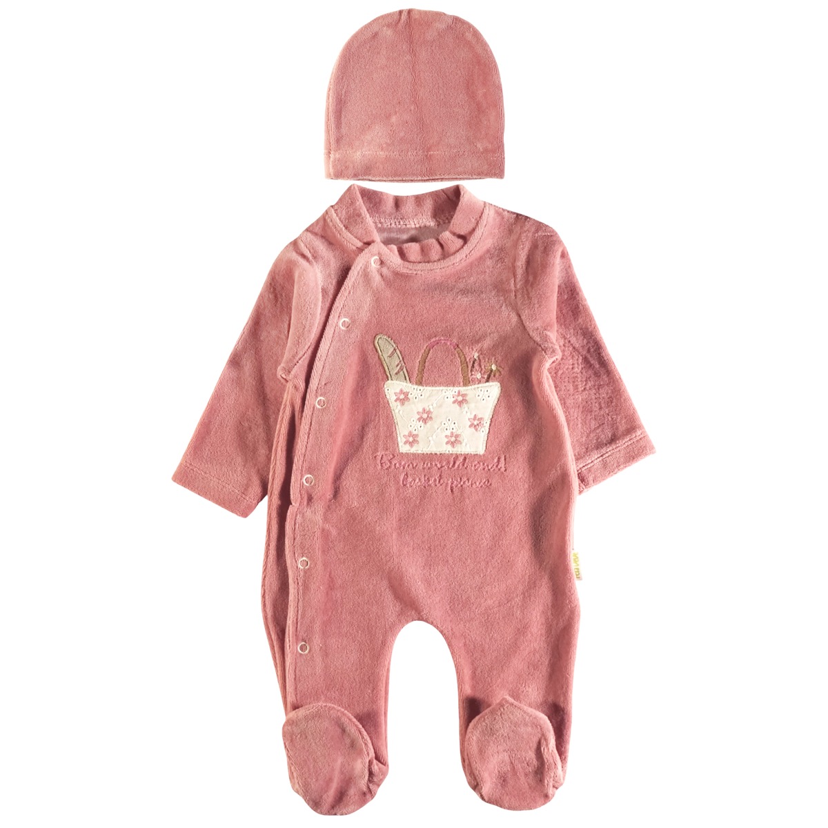 Το ολόσωμο βελουτέ φορμάκι με σκουφάκι της Pera Bebe σε σομόν απόχρωση είναι ιδανικό για τα κοριτσάκια τον χειμώνα. Κατασκευασμένο από βελουτέ βαμβακερό ύφασμα με σύνθεση 80% βαμβάκι και 20% πολυεστέρα, προσφέρει απαλότητα και ζεστασιά. Το εμπρός μέρος διακοσμείται με απλικέ σχέδιο, ενώ το άνοιγμα με τρουκς από τον λαιμό έως κάτω στο πλάι διευκολύνει το ντύσιμο. Το σκουφάκι που το συνοδεύει ολοκληρώνει το σύνολο, κάνοντάς το πρακτικό και άνετο για κάθε στιγμή της ημέρας.