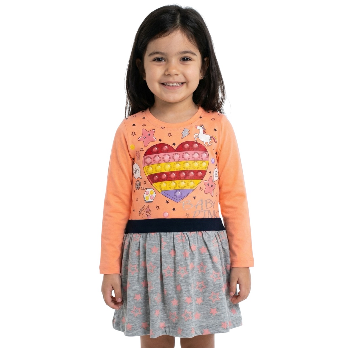 Ένα φορεματάκι για όμορφες εμφανίσεις, από λεπτό βαμβακερό ύφασμα. Στάμπα στο εμπρός μέρος και ελαφριές πιέτες στο κάτω. Σύνθεση από 95% βαμβάκι και 5% ελαστάνη.