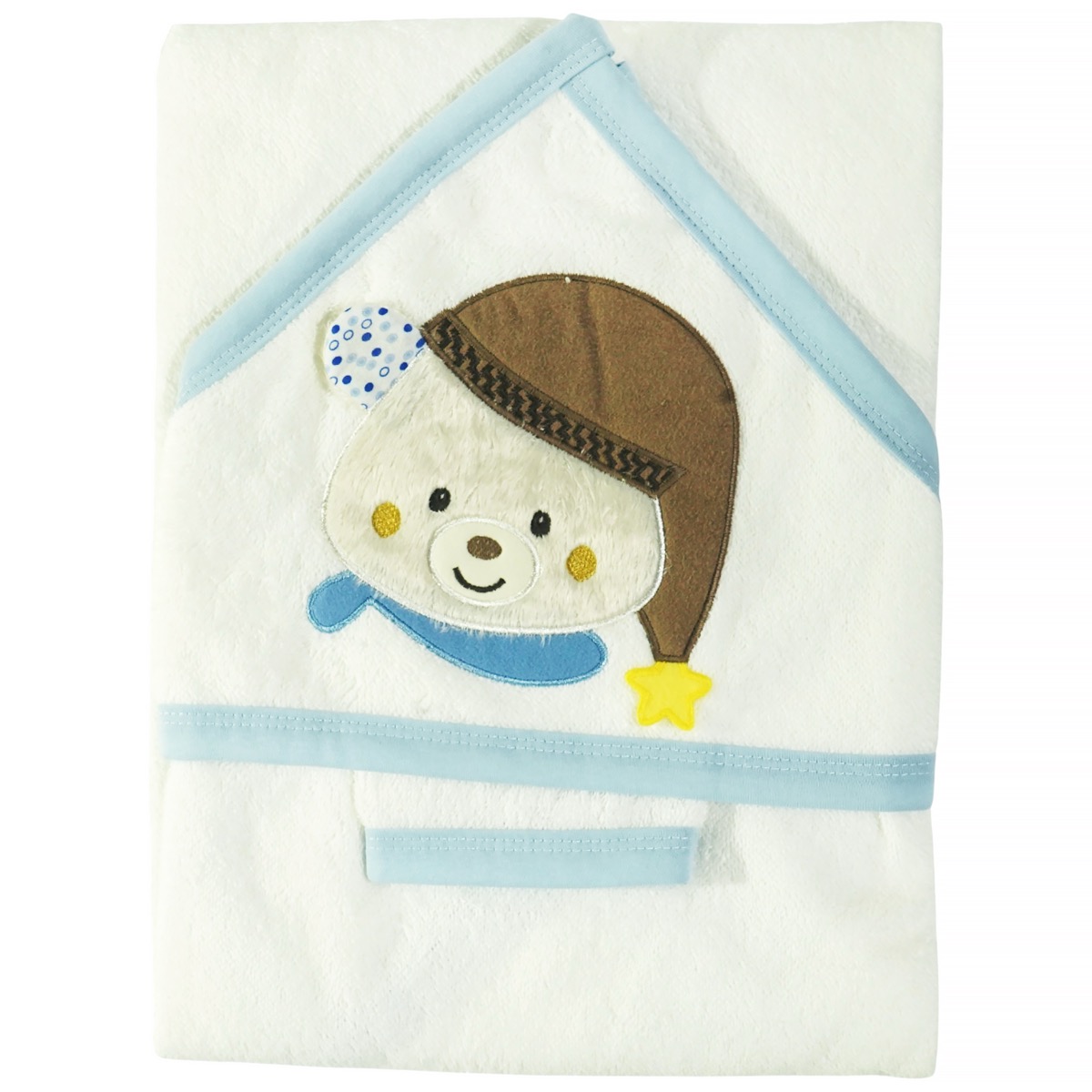 Η μπουρνουζοπετσέτα Ramel σε εκρού απόχρωση είναι φτιαγμένη για να τυλίγει το αγοράκι σας με αγάπη μετά το μπάνιο. Η κουκούλα της, με το χαριτωμένο απλικέ αρκουδάκι, δίνει μια παιχνιδιάρικη νότα που θα κερδίσει αμέσως τις καρδιές μικρών και μεγάλων. Με σύνθεση 90% βαμβάκι και 10% πολυεστέρα, προσφέρει απαλότητα και ζεστασιά, κάνοντάς την ιδανική για τις κρύες μέρες του χειμώνα. Το σετ ολοκληρώνεται με ένα πρακτικό γαντάκι μπάνιου, ώστε κάθε στιγμή φροντίδας να είναι γεμάτη τρυφερότητα και στυλ. Ένα δώρο που συνδυάζει χρηστικότητα και γλυκιά εμφάνιση.