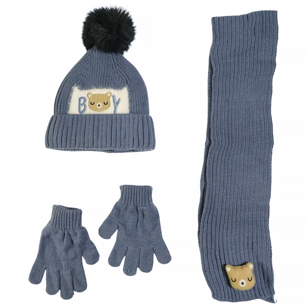 Recos πλεκτό σετ σκούφος-κασκόλ-γάντια «Blue Boy»