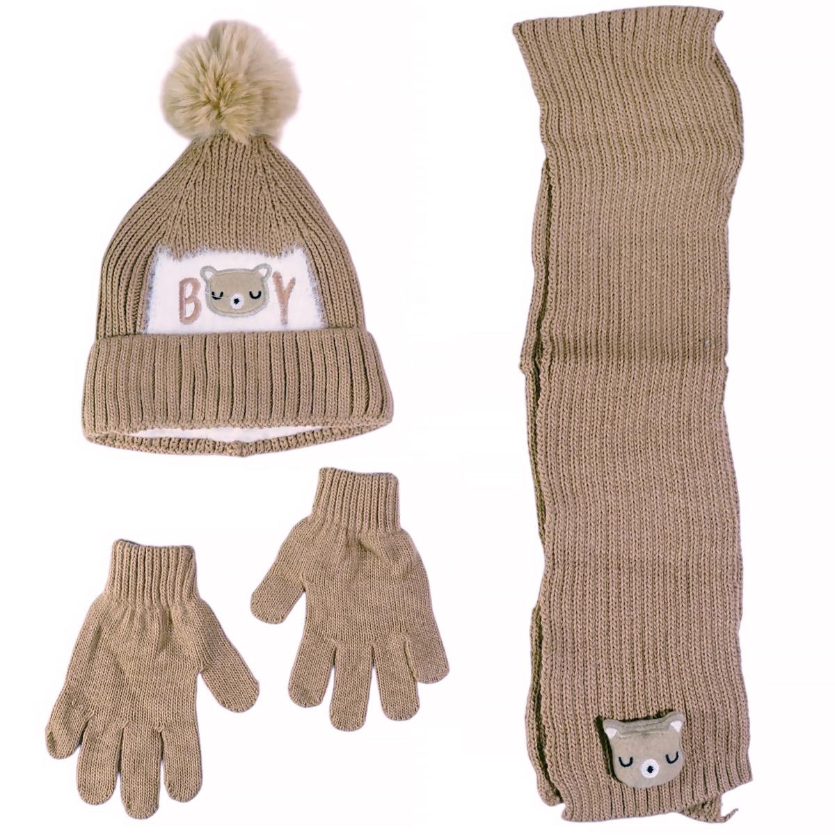 Recos πλεκτό σετ σκούφος-κασκόλ-γάντια «Brown Boy»
