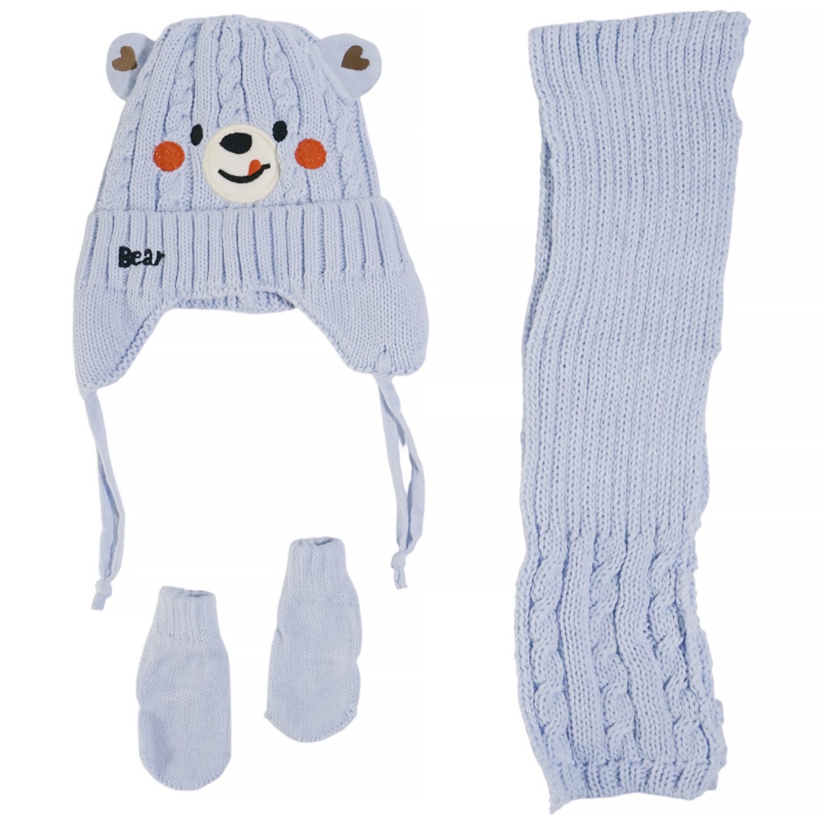 Το πλεκτό σετ Recos για αγόρια σε γαλάζιο χρώμα περιλαμβάνει σκούφο, κασκόλ και γάντια, δημιουργώντας ένα ολοκληρωμένο σύνολο για τις πιο κρύες χειμερινές μέρες. Φτιαγμένο από 100% ακρυλικό με μαλακό, χοντρό νήμα, προσφέρει άριστη θερμομόνωση και απαλή υφή που αγκαλιάζει τα μικρά σας με άνεση. Ο σκούφος διαθέτει ένα χαριτωμένο απλικέ σχέδιο στο μπροστινό μέρος και δυο αυτάκια στο επάνω, χαρίζοντας έναν παιχνιδιάρικο και ζεστό χαρακτήρα, ενώ η εσωτερική επένδυση από fleece εξασφαλίζει επιπλέον προστασία από το κρύο. Το κασκόλ και τα γάντια, κατασκευασμένα από το ίδιο ζεστό νήμα, ολοκληρώνουν αρμονικά το σύνολο, εξασφαλίζοντας μια κομψή και συντονισμένη εμφάνιση. Το γαλάζιο χρώμα είναι φρέσκο και ανάλαφρο, συνδυάζεται άψογα με κάθε χειμερινό ντύσιμο, κάνοντας το σετ αυτό απαραίτητο για τη γκαρνταρόμπα των αγοριών σας.