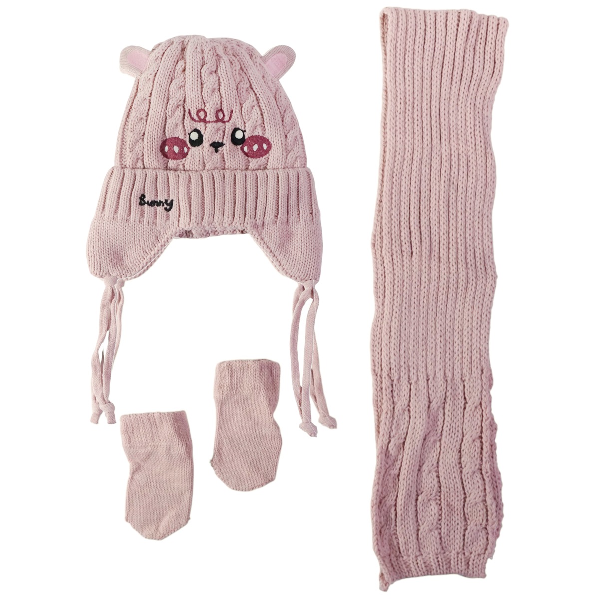 Recos πλεκτό σετ σκούφος-κασκόλ-γάντια «Salmon Bunny»