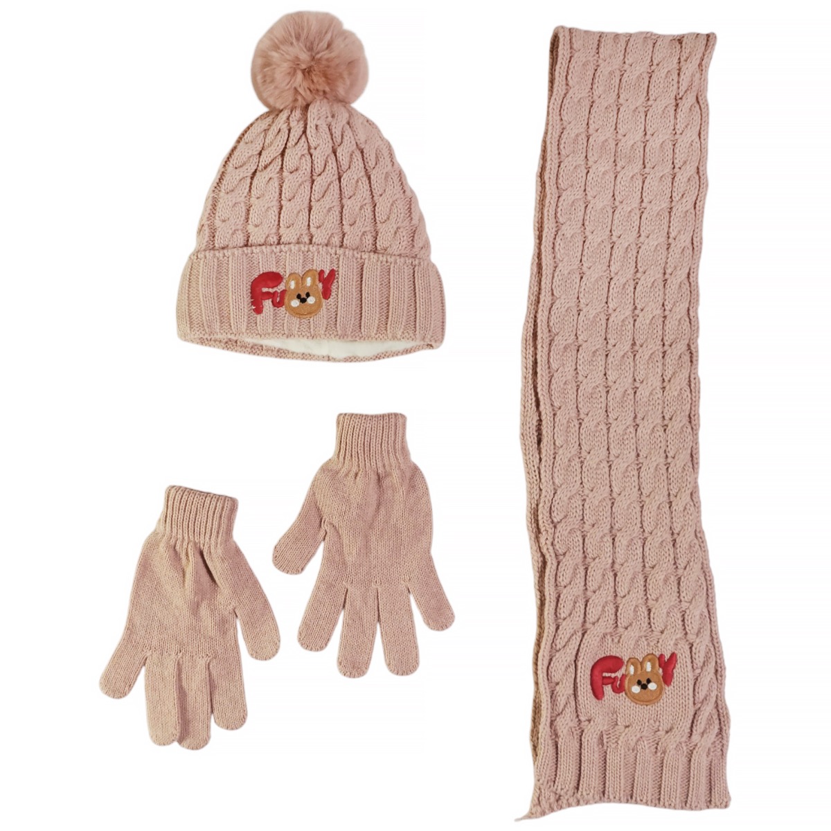 Recos πλεκτό σετ σκούφος-κασκόλ-γάντια «Salmon Funny Bunny»