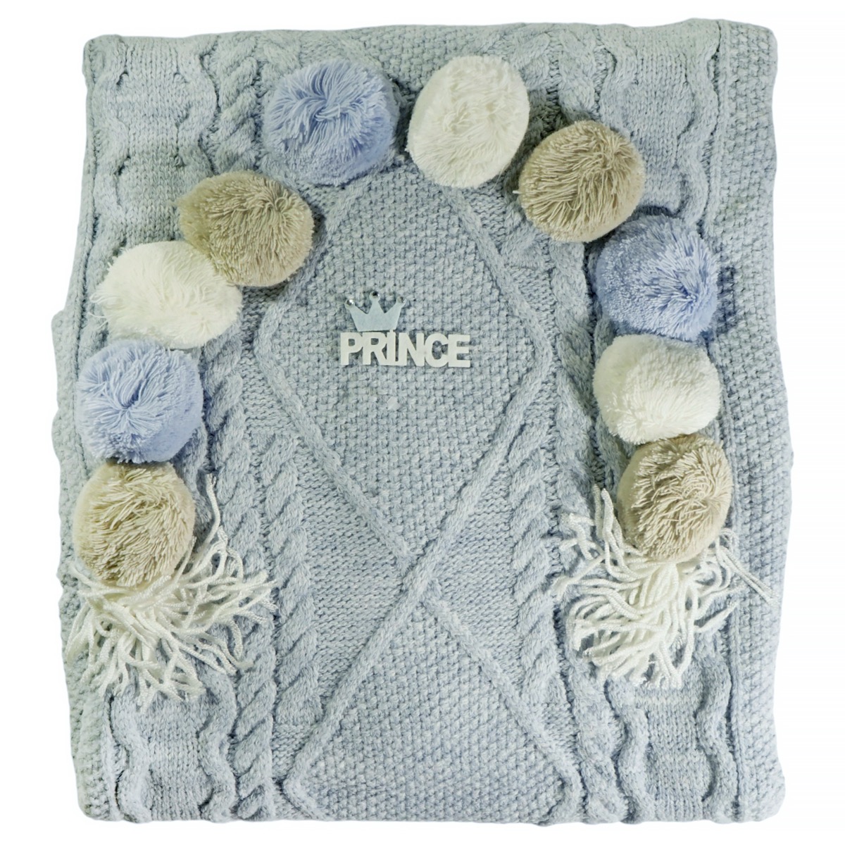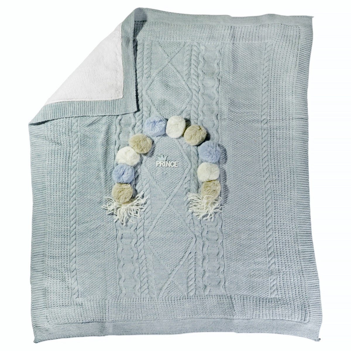 Η γαλάζια πλεκτή βρεφική κουβέρτα της Recos είναι μια εξαιρετική επιλογή για το βρεφικό λίκνο, το πόρτ μπεμπέ ή το καροτσάκι. Είναι φτιαγμένη από πολύ απαλό νήμα με περίτεχνα σχέδια στην πλέξη, ενώ στο επάνω μέρος διαθέτει μεγάλα πον πον και ένα χαριτωμένο απλικέ σχέδιο που την κάνει μοναδική. Το πίσω μέρος είναι επενδυμένο με απαλή γούνα προβατάκι από 100% velsoft, προσφέροντας μια αίσθηση πολυτέλειας και άνεσης. Η σύνθεση του επάνω μέρους είναι από 100% ακρυλικό, εξασφαλίζοντας ανθεκτικότητα και απαλότητα που διαρκεί, ιδανική για αγοράκια προσφέροντας ζεστασιά τον χειμώνα.