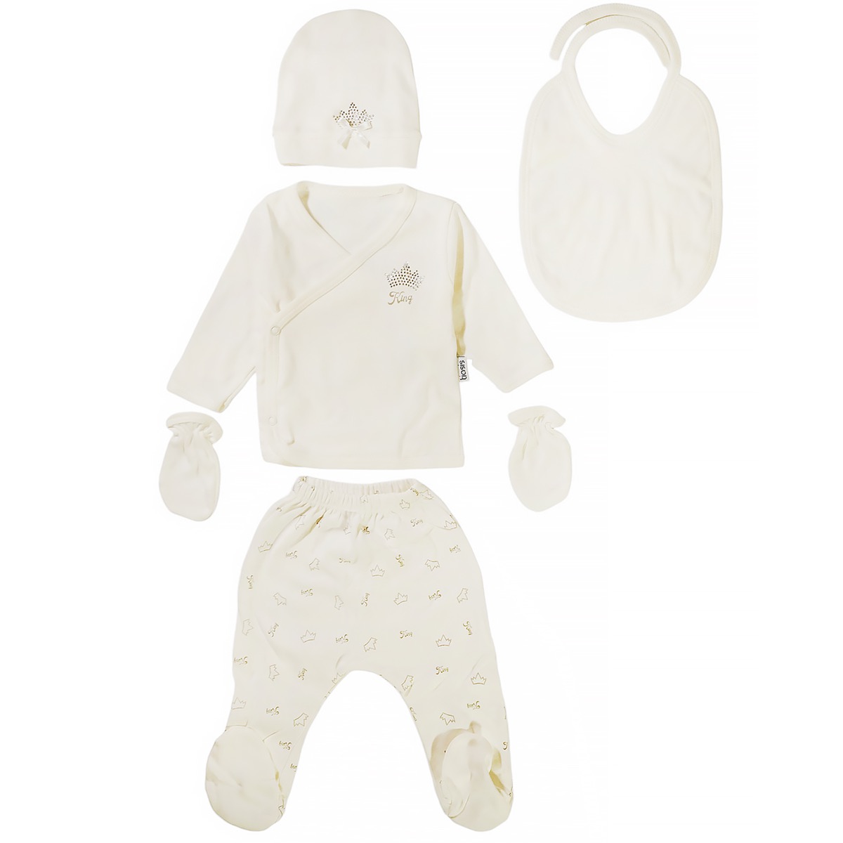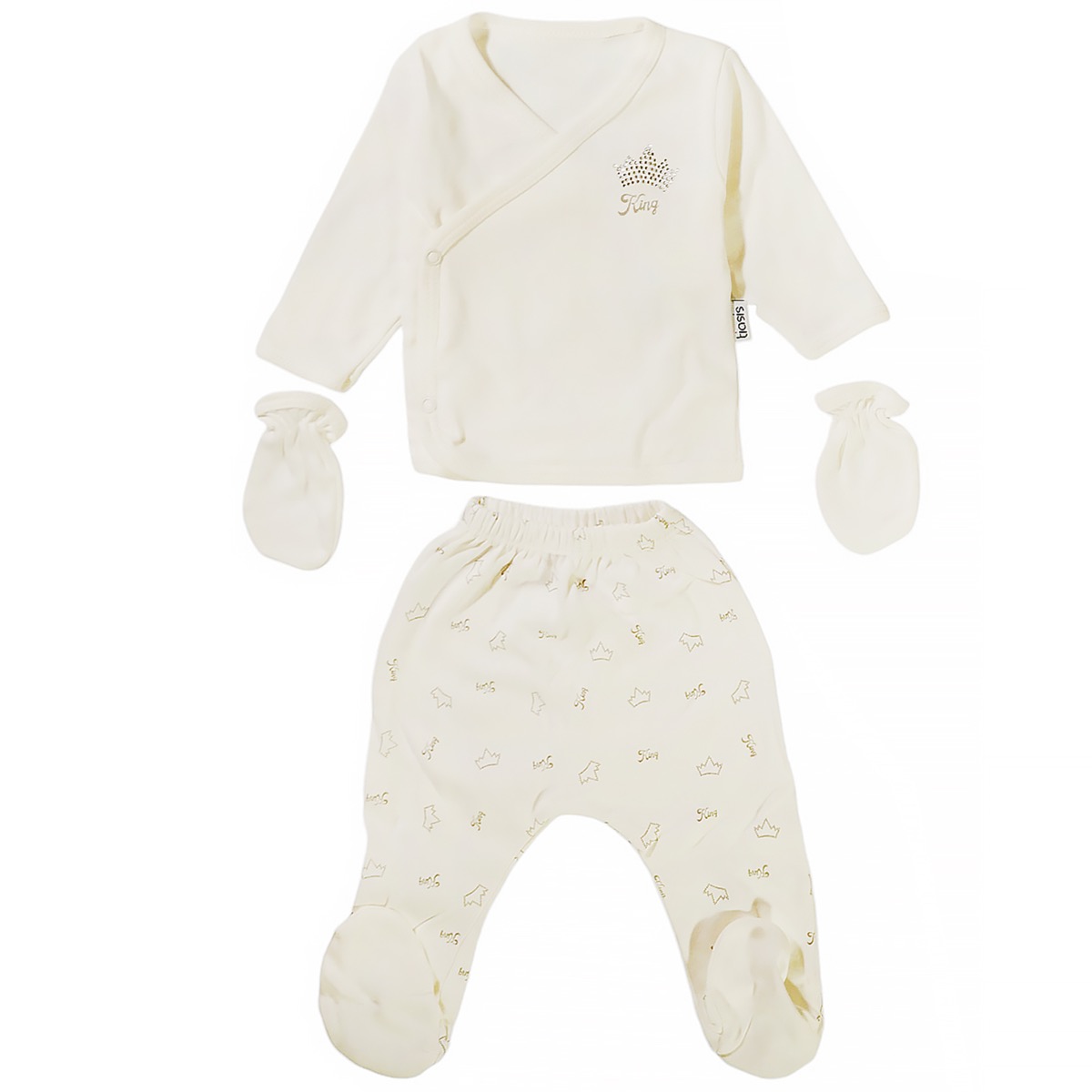 Γνωρίστε το βρεφικό σετ δώρου πέντε τεμαχίων από τη μάρκα Tiasis, ιδανικό για το μικρό σας αγόρι. Το σετ περιλαμβάνει μια μακρυμάνικη μπλούζα σε λευκό χρώμα, διακοσμημένη με εντυπωσιακά στρασάκια στο εμπρός μέρος και άνοιγμα με τρουκς στο πλάι για εύκολη εφαρμογή. Το παντελόνι διαθέτει «κλειστά ποδαράκια» και λάστιχο περιμετρικά στη μέση, προσφέροντας άνεση και ευκολία κινήσεων. Η σαλιάρα που δένει με κορδόνι, το ασορτί σκουφάκι και τα γαντάκια νεογνού ολοκληρώνουν το στιλάτο σύνολο, ιδανικό για κάθε περίσταση. Κατασκευασμένο από 100% βαμβάκι, το σετ είναι απαλό και ιδανικό για το ευαίσθητο δέρμα του μωρού, κατάλληλο για όλες τις εποχές. Επιλέξτε αυτό το ποιοτικό σετ ως το τέλειο δώρο για κάθε γονέα!