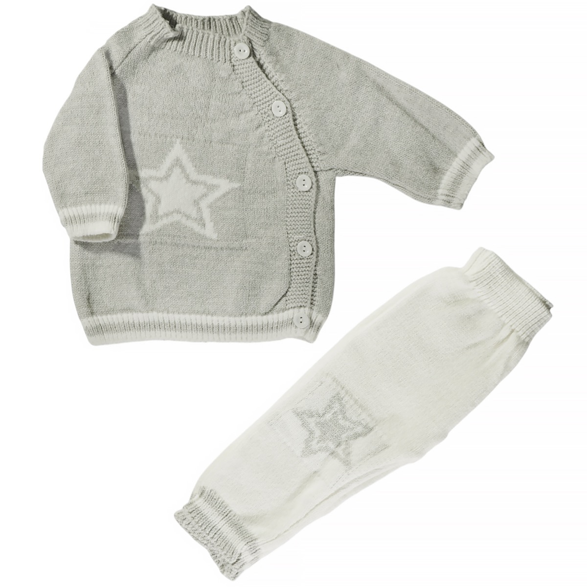 Το βρεφικό πλεκτό σετ της Trikomer είναι η ιδανική επιλογή για τα αγοράκια σας τον χειμώνα, συνδυάζοντας ζεστασιά και πρακτικότητα. Η γκρι ζακέτα διαθέτει όμορφο σχέδιο στην πλέξη και άνοιγμα με κουμπιά στο πλάι για μεγαλύτερη ευκολία στην αλλαγή. Το εκρού παντελόνι έχει λάστιχο περιμετρικά στη μέση για άνετη εφαρμογή. Κατασκευασμένο από 100% ακρυλικό, το σετ εξασφαλίζει την ζεστασιά και την προστασία από το κρύο που χρειάζεται το μωρό σας τις χειμερινές μέρες, ενώ ο συνδυασμός των χρωμάτων προσφέρει ένα κομψό και διακριτικό ντύσιμο για κάθε καθημερινή στιγμή.