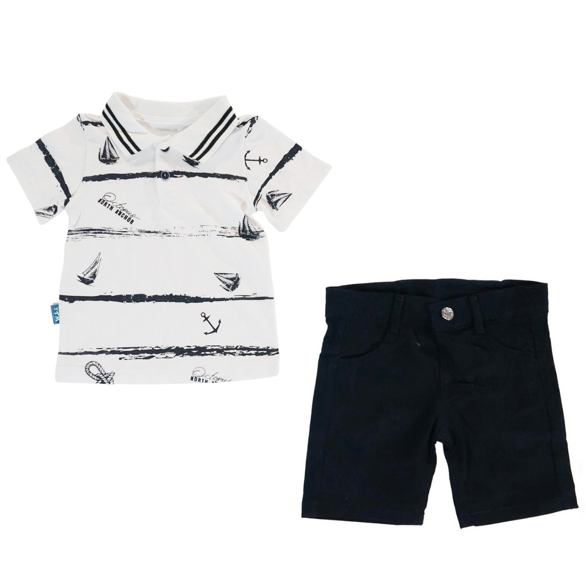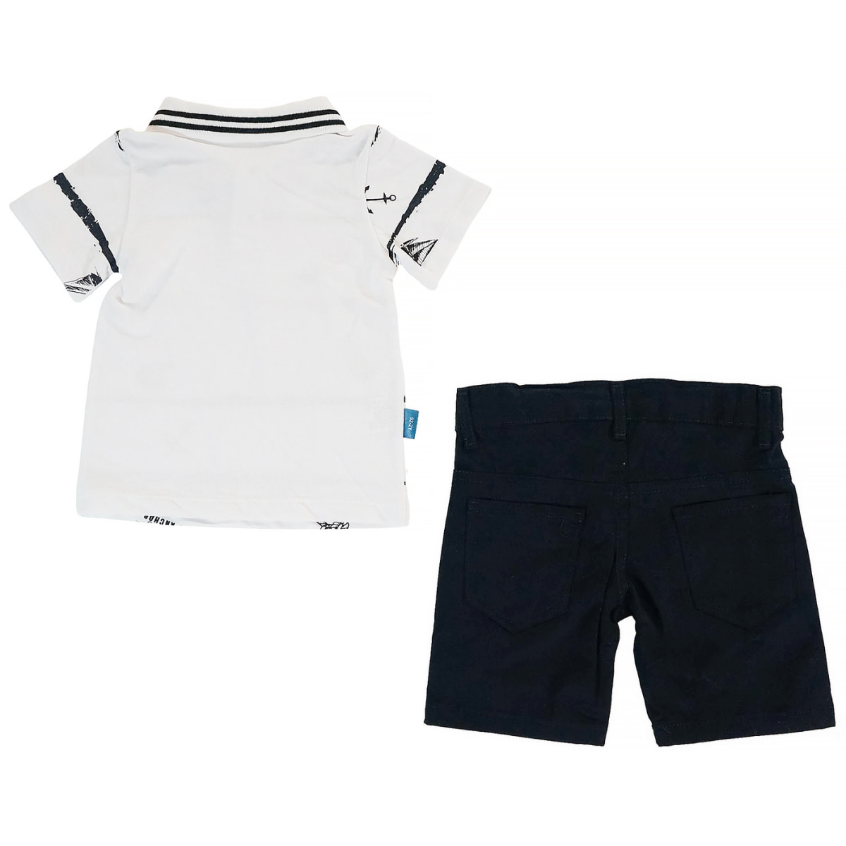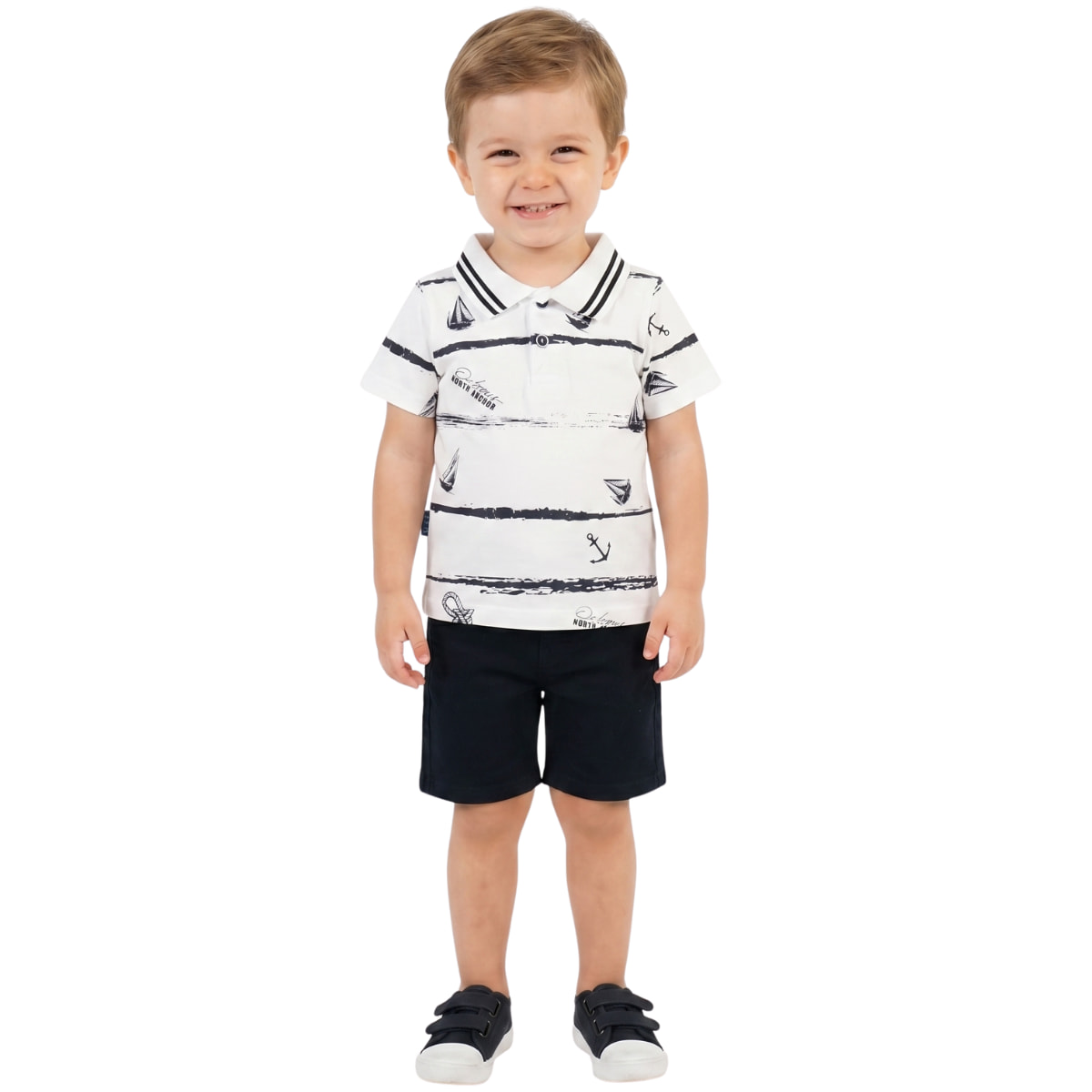 Αυτό το κομψό καλοκαιρινό σετ από τη Yakup Bebe προσφέρει στα αγοράκια σας μια υπέροχη επιλογή για τις πιο προσεγμένες εμφανίσεις τους. Η λευκή κοντομάνικη πόλο μπλούζα κλέβει την παράσταση, καθώς το ναυτικό τύπωμα με τα ιστιοφόρα χαρίζει μια πολύ αριστοκρατική και δροσερή εικόνα στις βόλτες τους. Ταιριάζει εξαιρετικά με την μπλε βερμούδα, η οποία διαθέτει πρακτικές τσέπες στο μπροστινό και στο πίσω μέρος για να προσθέτει λειτουργικότητα στο ντύσιμο. Σχεδιασμένη να ανοίγει με κουμπί, κρύβει στο εσωτερικό της ένα βολικό λάστιχο που αυξομειώνει, επιτρέποντάς σας να προσαρμόζετε την εφαρμογή ακριβώς στα μέτρα τους, χωρίς να τα πιέζει ποτέ την ώρα που τρέχουν. Επειδή οι ζεστές μέρες ζητούν ανάλαφρη αίσθηση, ολόκληρο το σύνολο κατασκευάζεται αποκλειστικά από 100% βαμβάκι. Αυτή η φυσική επιλογή αγκαλιάζει απαλά το ευαίσθητο δερματάκι τους, δημιουργώντας ένα πραγματικά στιλάτο και άνετο αποτέλεσμα για τις διακοπές και τις ξεχωριστές τους στιγμές.