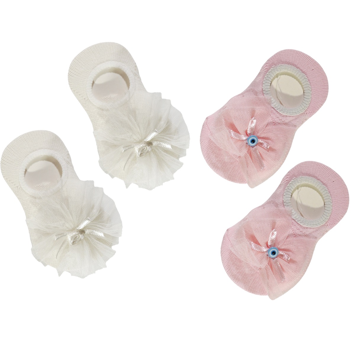 Zual βρεφικές καλτσούλες δυο τεμαχίων με τούλι «Pink & White Eye»